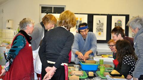 Unter der Leitung von Akira Matsumoto schöpfen Sie auf einfache Weise eine dekorierte Grußkarte.